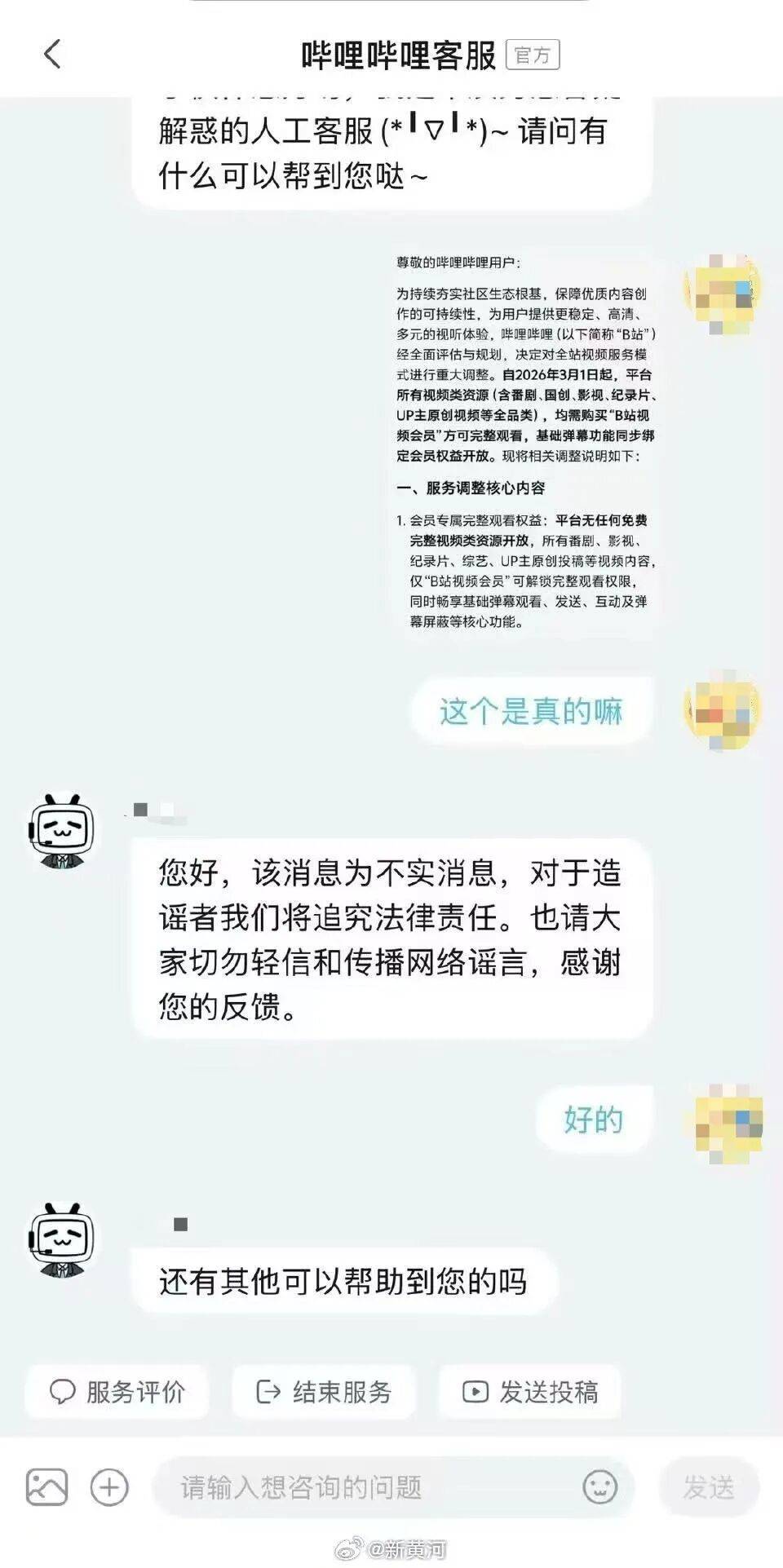 据新黄河报道,昨日,收集传播一张关于「哔哩哔哩(B 坐)自 2026 年 3 月 1 日起,平台所有视频需采办 B 坐视频会员方可完整旁不雅,根本弹幕功能同步绑定会员权益」的截图,激发用户关心取会商。记者向 B 坐相关人士核实获悉,上述动静为不实消息。B 坐方面暗示,将对者逃查法令义务,并呼吁用户切勿轻信和收集。